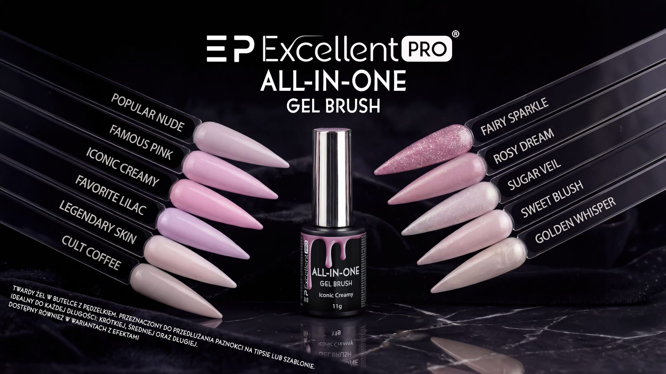 Excellent PRO ALL-IN-ONE Gel Brush Legendary Skin 11g by Excellent PRO is a multi-purpose builder gel with a built-in brush applicator designed for professional nail styling as well as at-home use. This product combines strength, build-up capability and a stylish light beige (“Legendary Skin”) shade—perfect for creating beautiful nails with durability and a flawless finish.